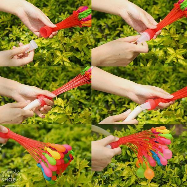- Simply secure the pre-packaged attachment to a hose and you'll have 100 water balloons ready to use in one minute